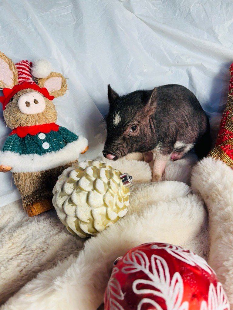 Every piglet purchase includes a piggy started kit. This kit will have some of the basics like a pamphlet on how to take care of the piglets, Mizuri mini pig food, and well as a few added bonuses.