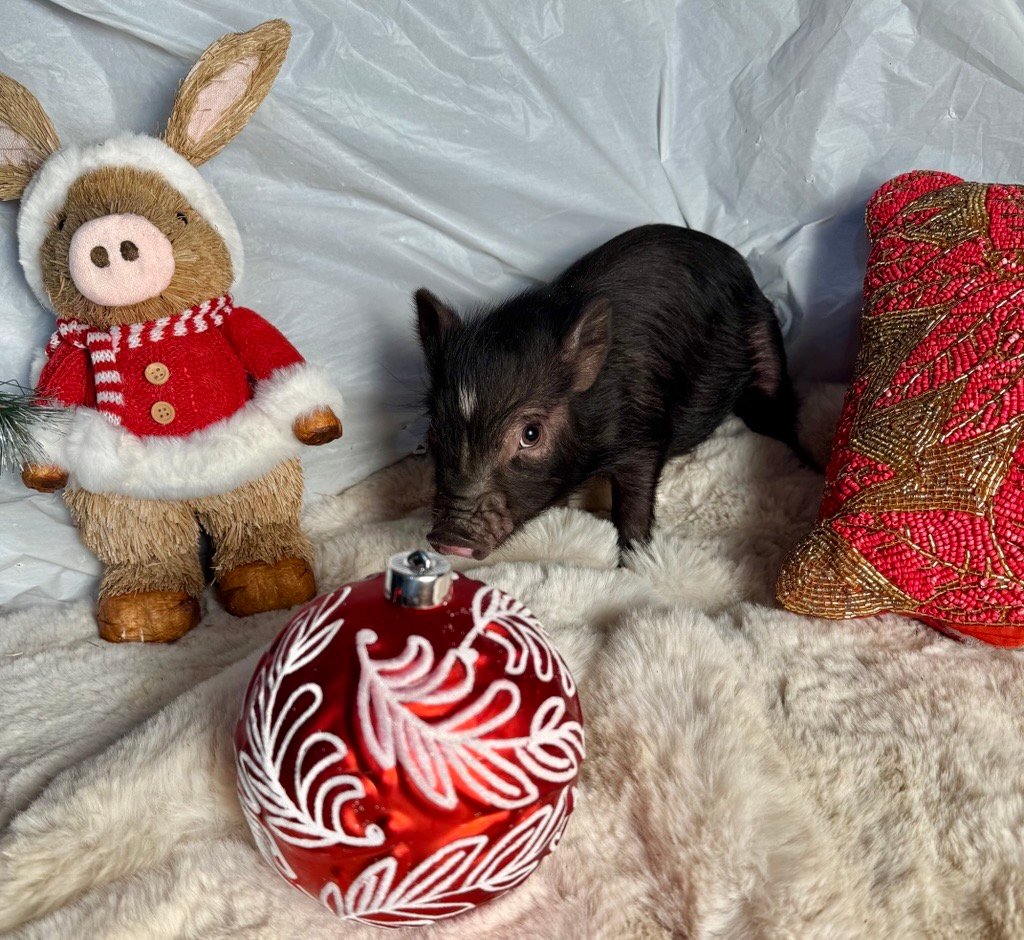 Every piglet purchase includes a piggy started kit. This kit will have some of the basics like a pamphlet on how to take care of the piglets, Mizuri mini pig food, and well as a few added bonuses.