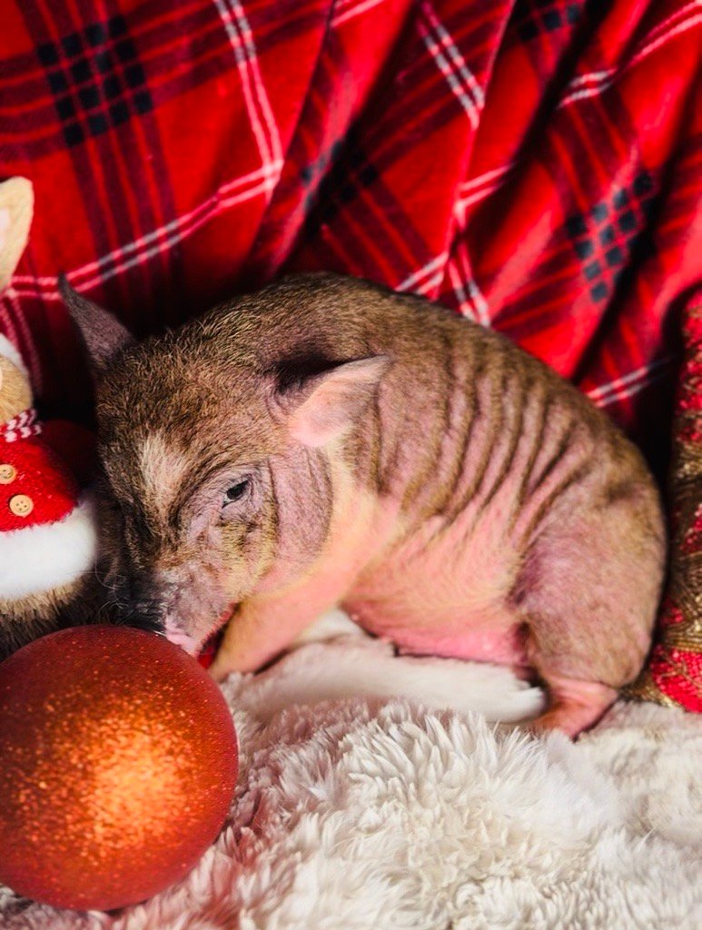 Unlike some breeders, we will not take pictures of our babies when they are hairless and just a day or two old. We wait until they are weaned from their mother before we take pictures and list them on the website. This ensures the piglets are healthy and mature enough to handle the stresses of adapting to a new family.